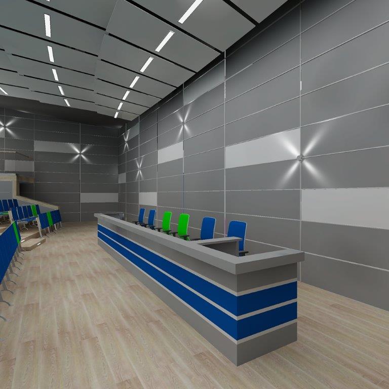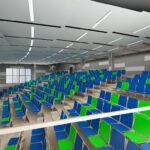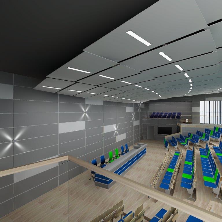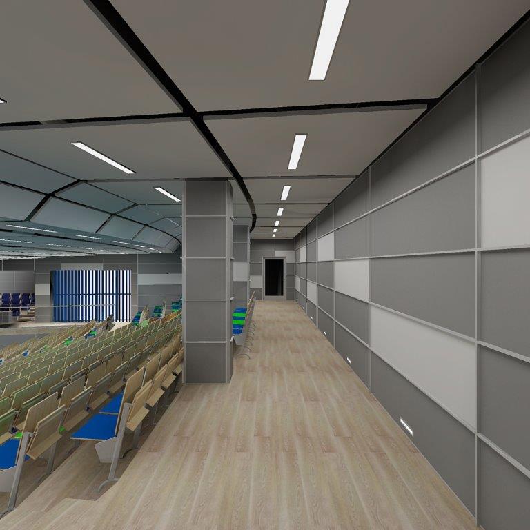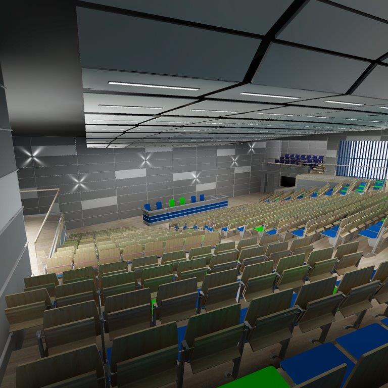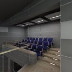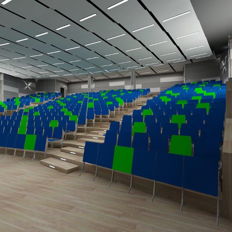ZUT Zachodniopomorski Uniwersytet Szczeciński w Szczecinie – projekt wnętrz auli w budynku CDBN, wizualizacje