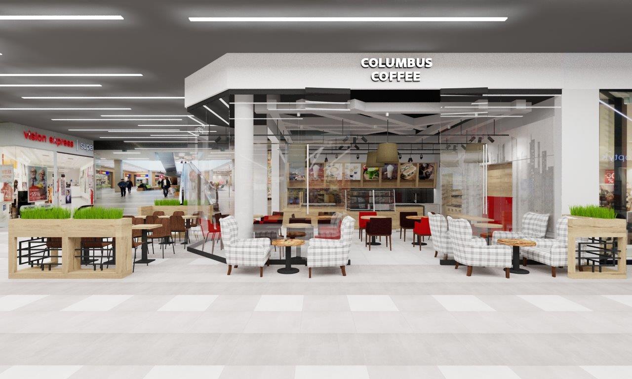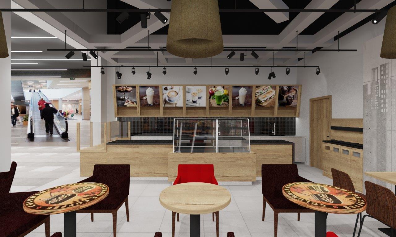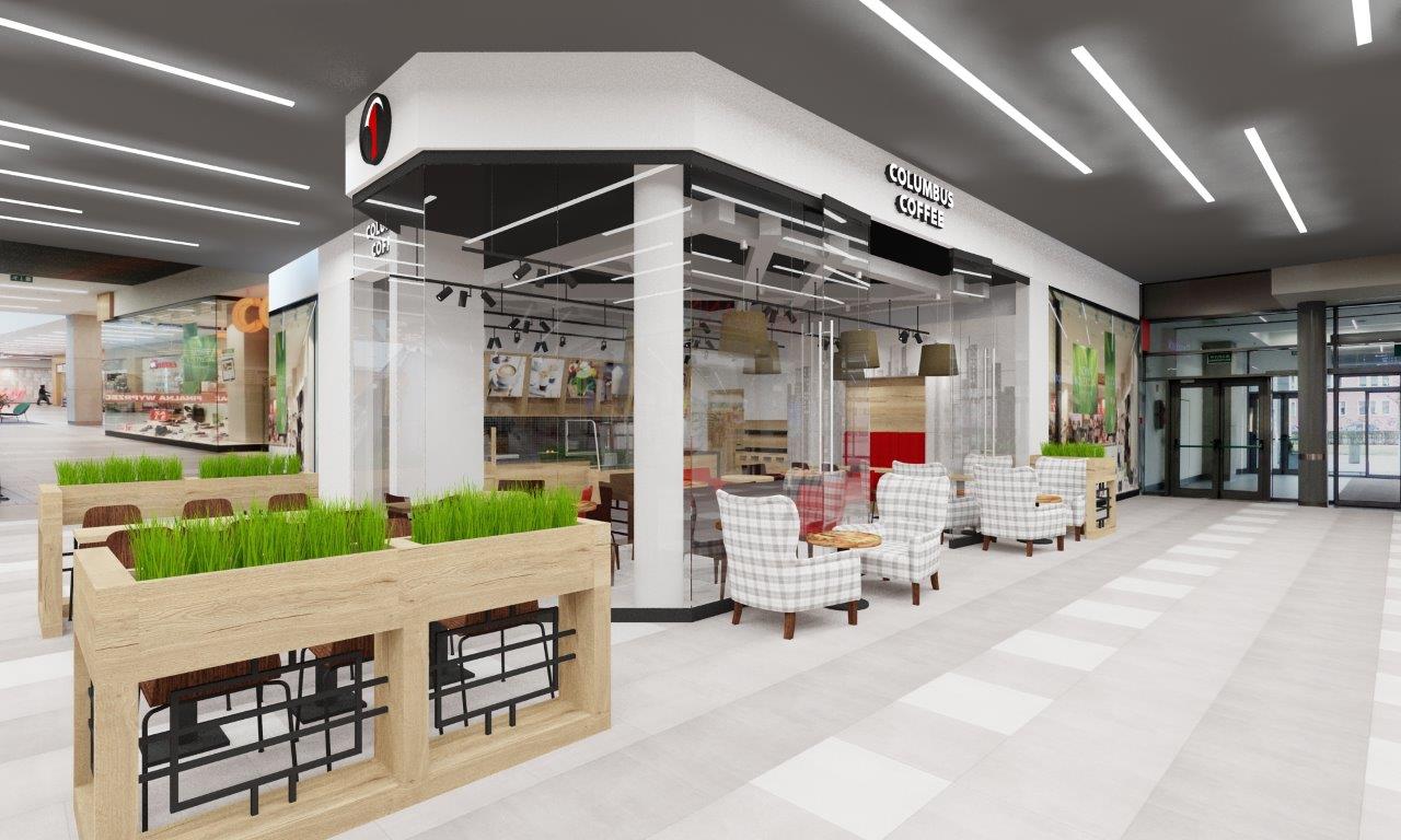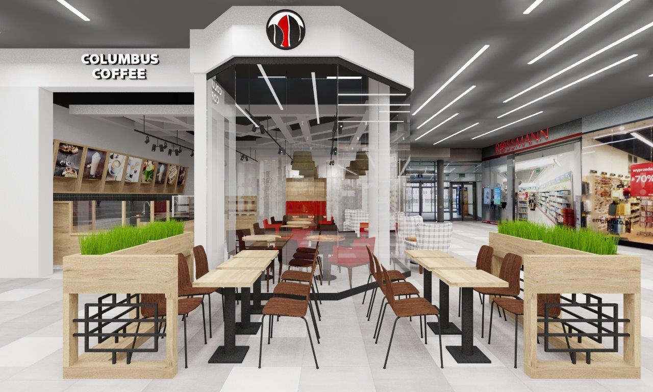 Kawiarnia Columbus Caffee w CH Turzyn w Szczecinie – projekt wnętrz, wizualizacje