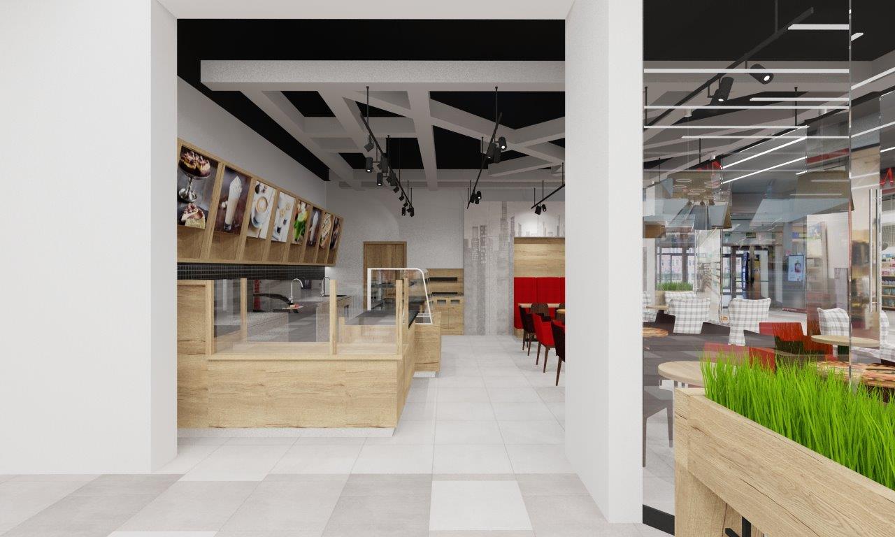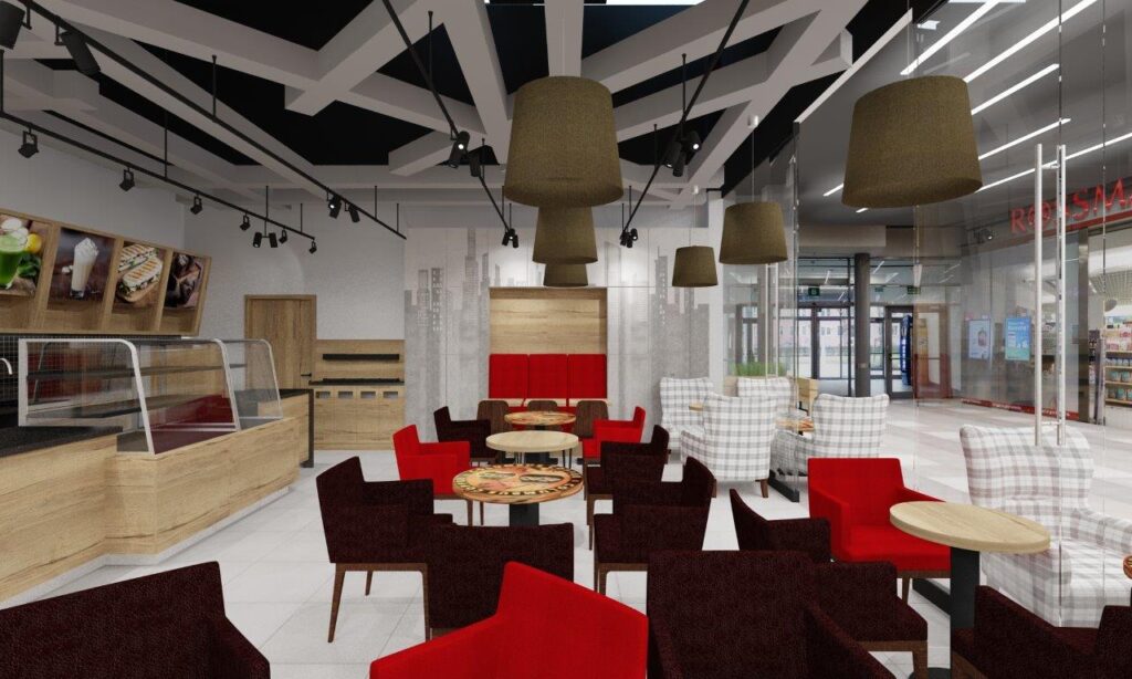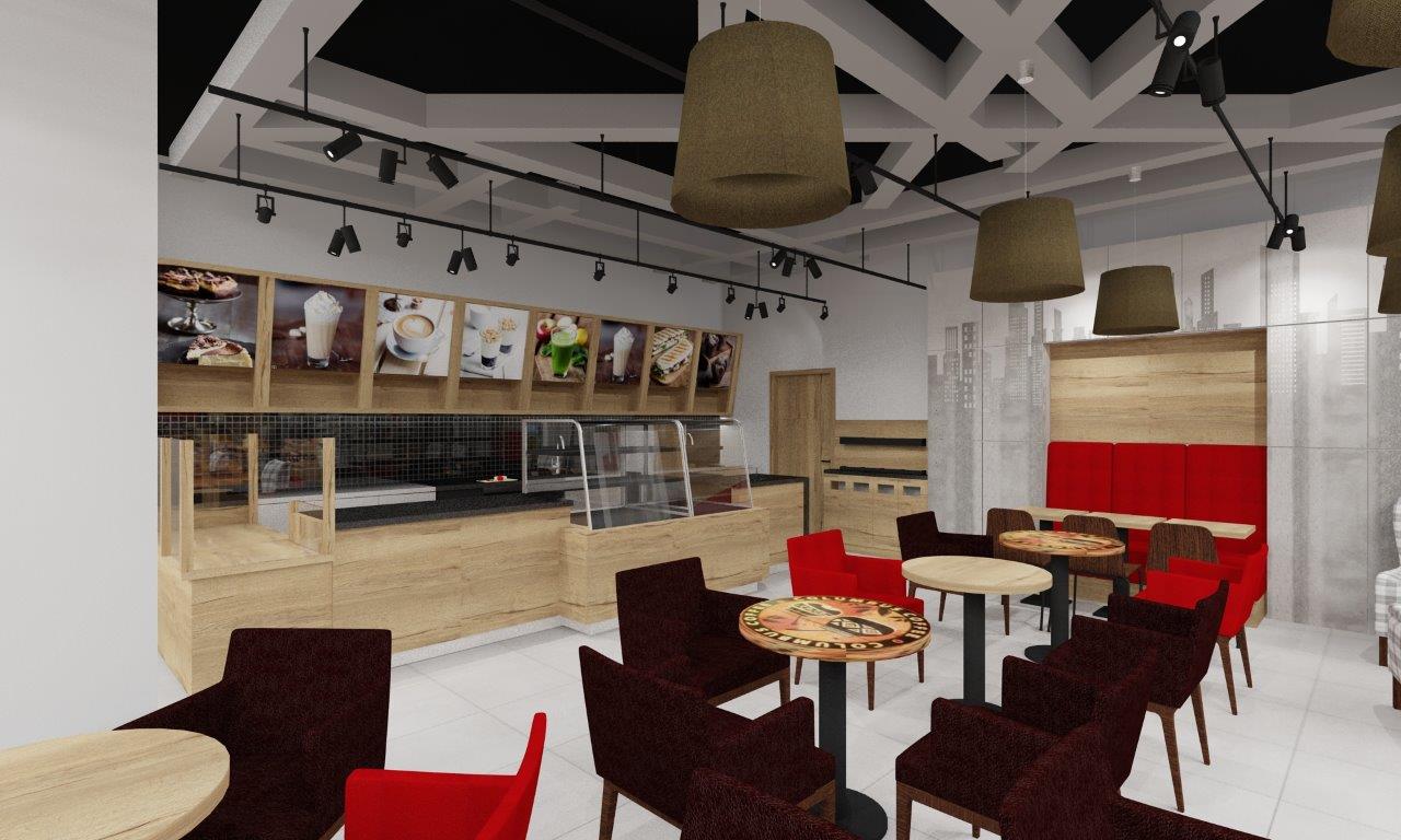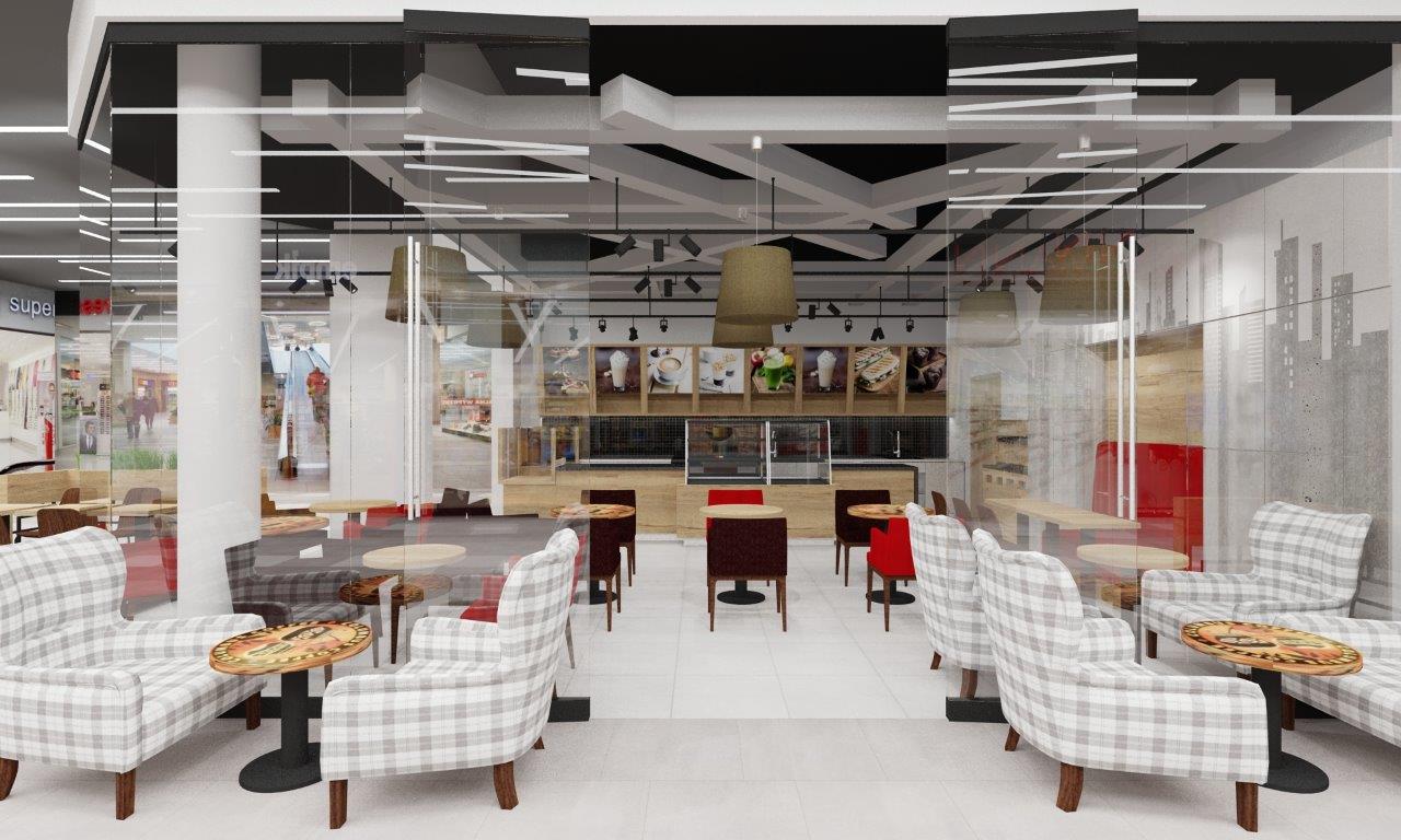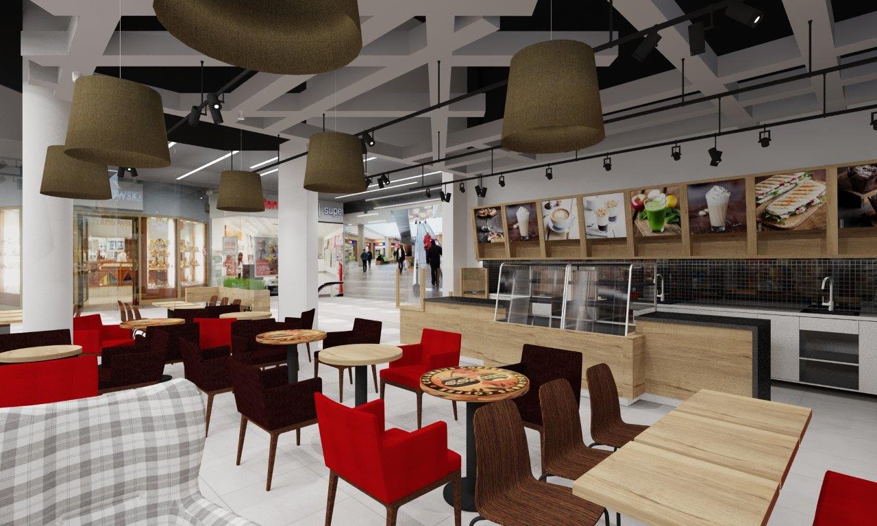 Kawiarnia Columbus Caffee w CH Turzyn w Szczecinie – projekt wnętrz, wizualizacje