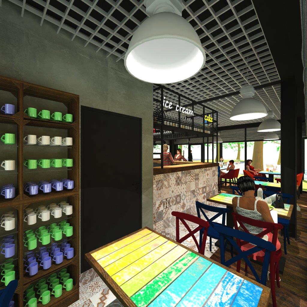 Kawiarnia u Grafików w Szczecinie  – projekt wnętrz, wizualizacje