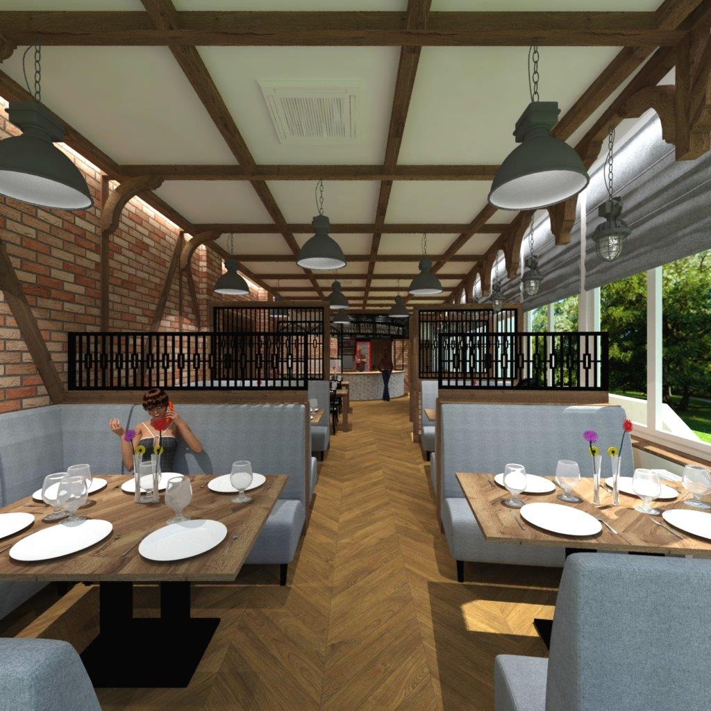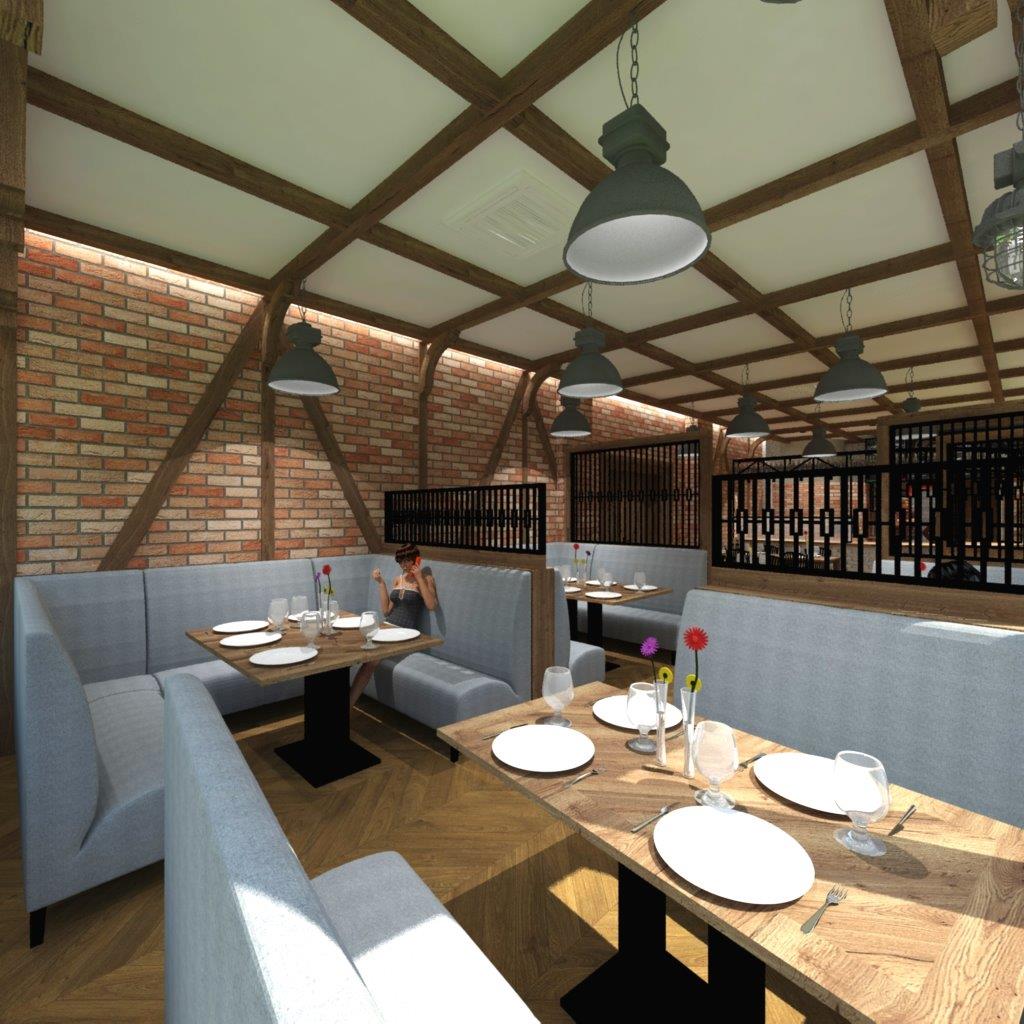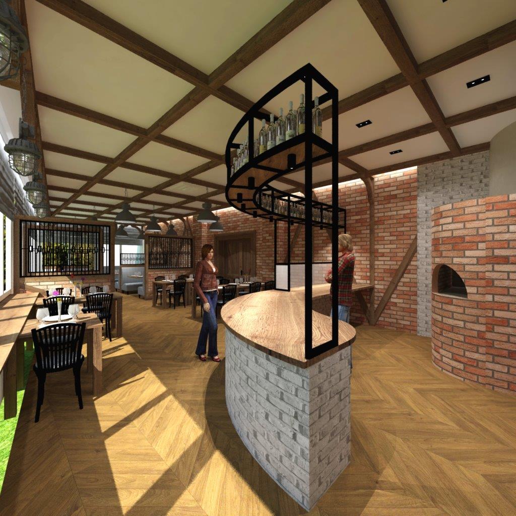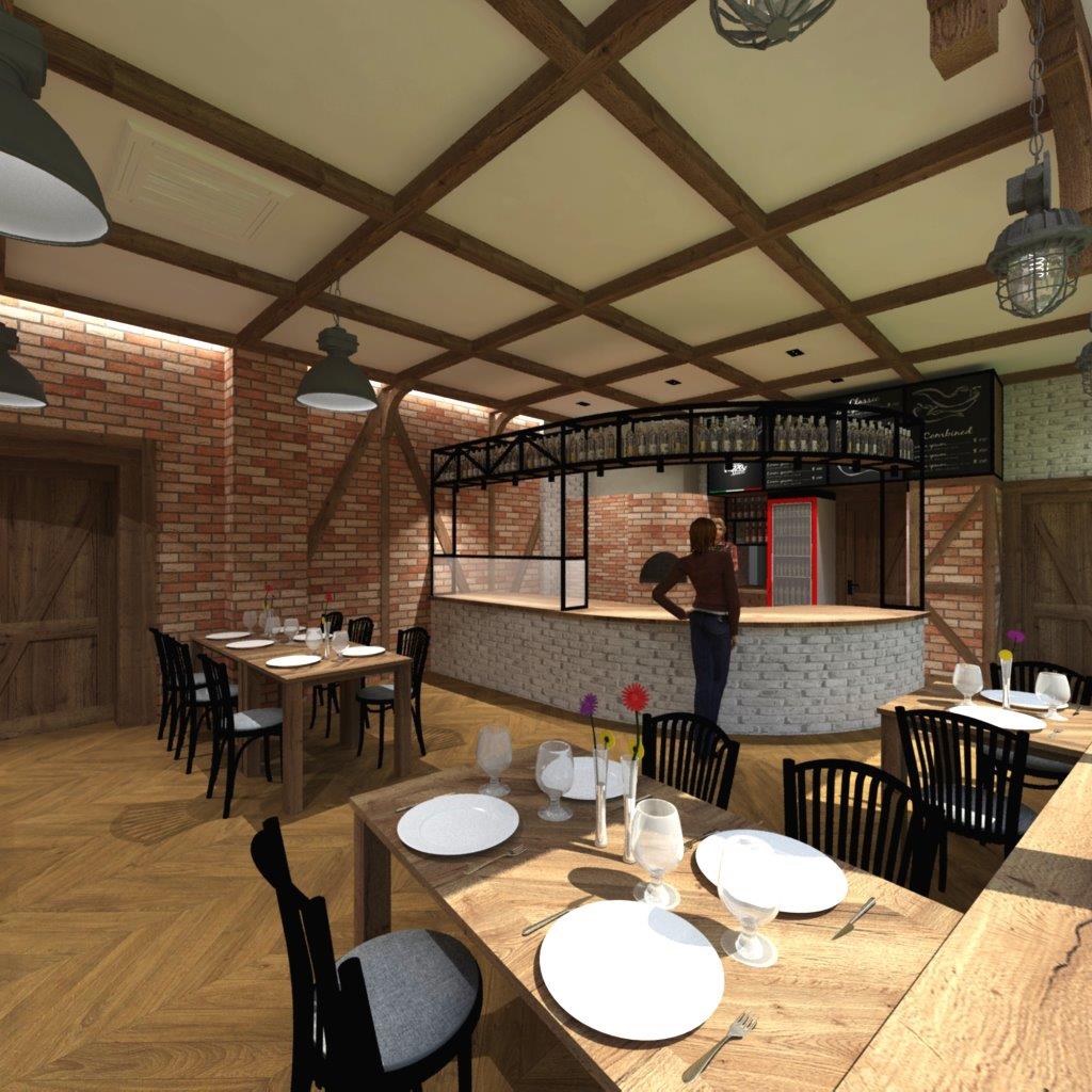 Pizzeria Bella w Policach – projekt wnętrz, wizualizacje