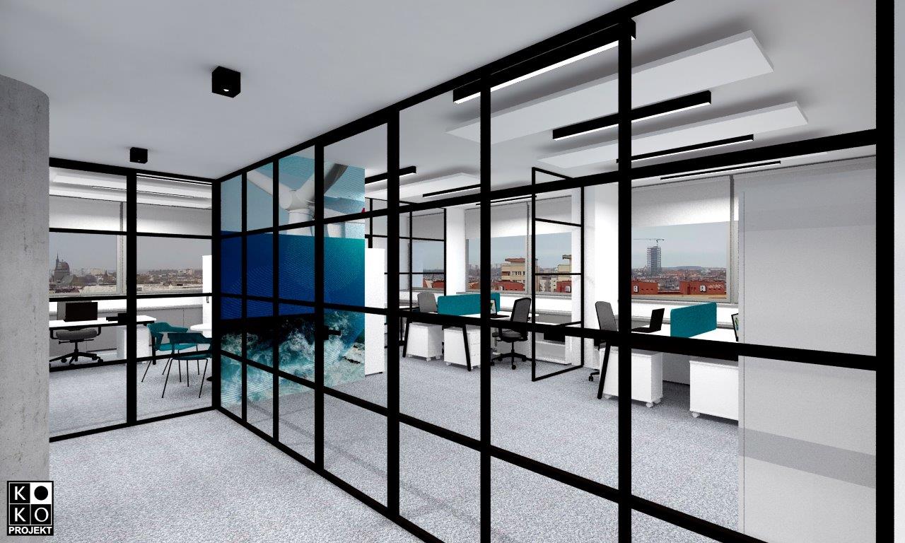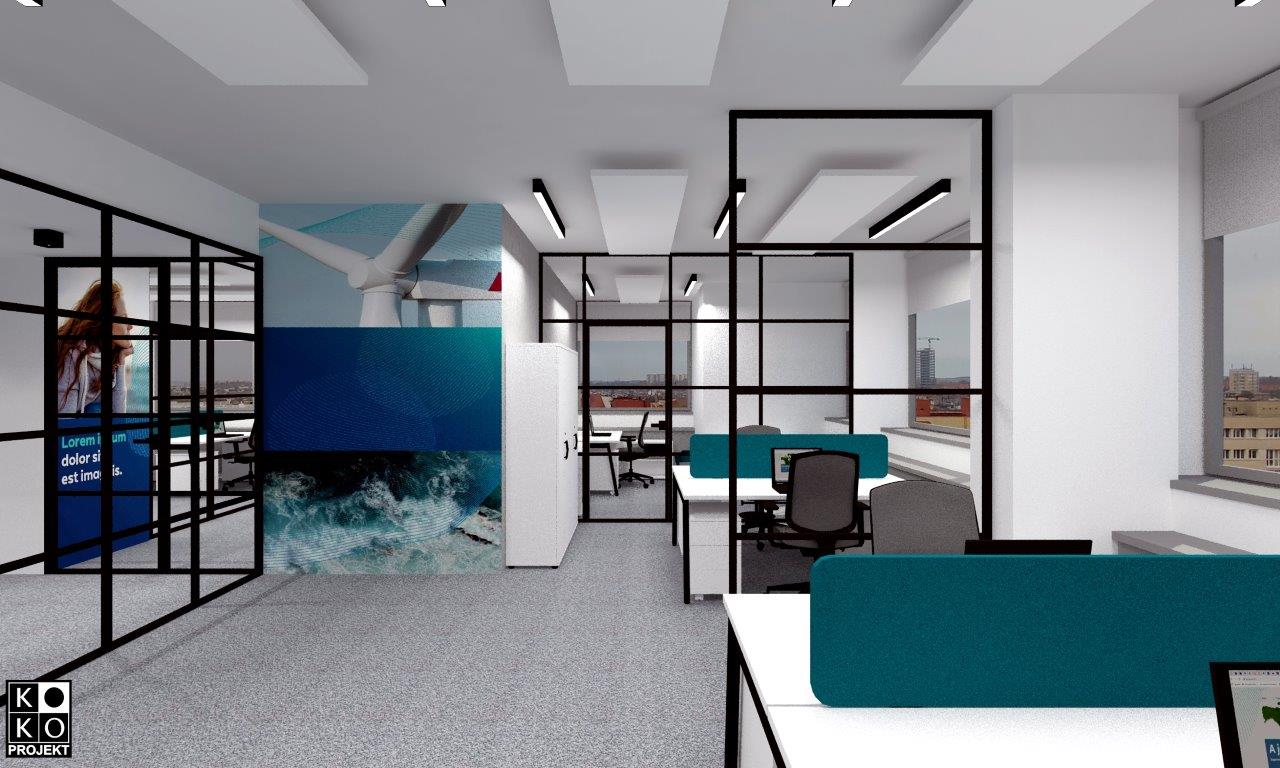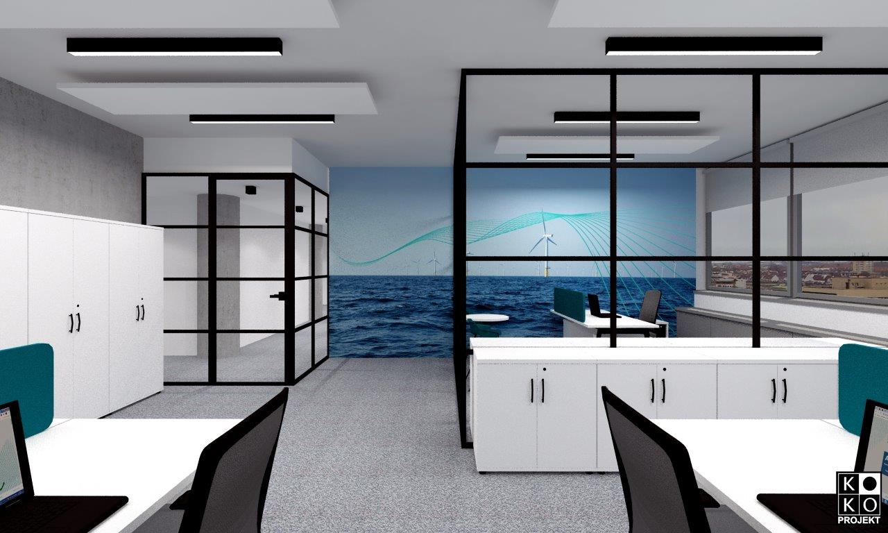 Projekt biur siedziby firmy RWE w Szczecinie – projekt wnętrz, wizualizacje