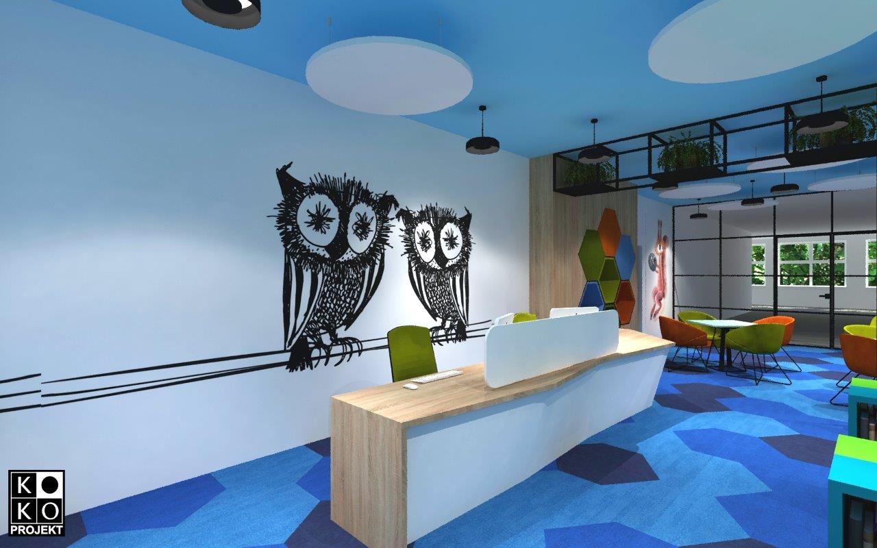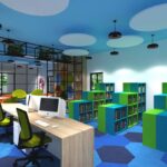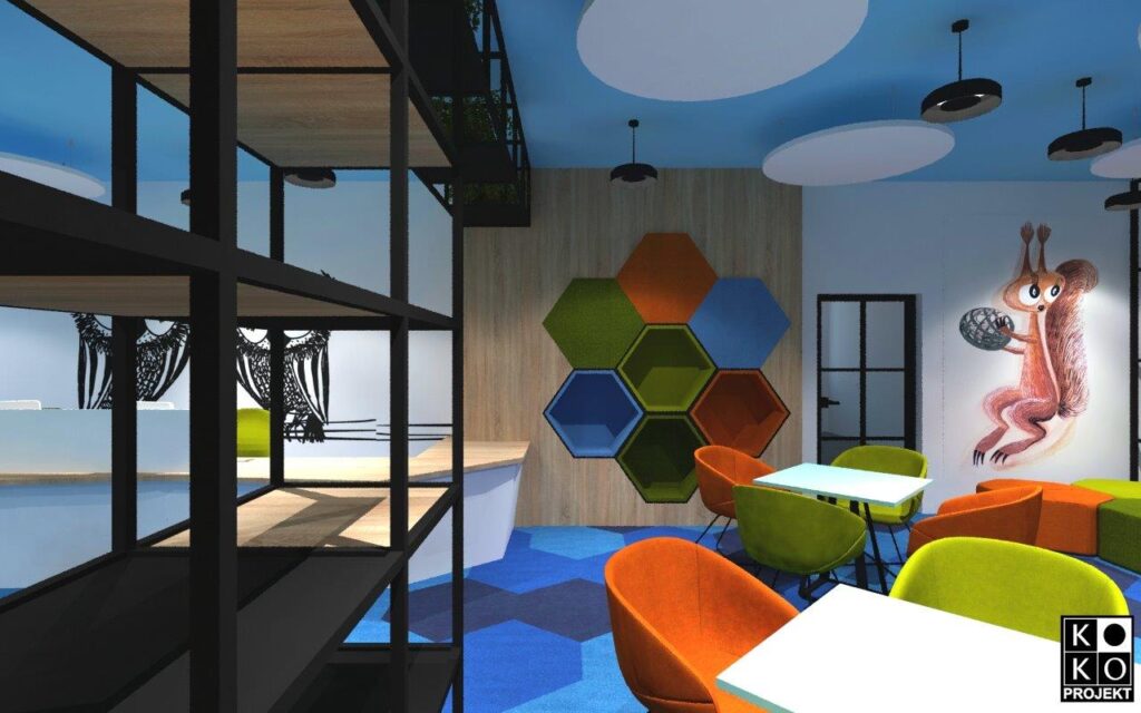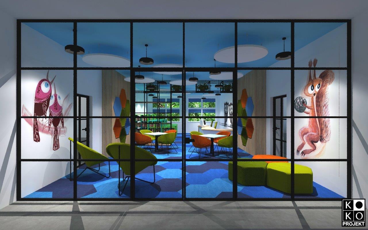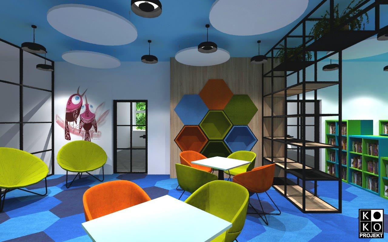 Projekt biblioteki w Szkole Podstawowej nr 8 w Policach – projekt wnętrz, wizualizacje